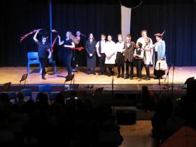 Students are encouraged to share their opinions regarding their own work and the work of others and to carefully consider how to shape meaning on stage.